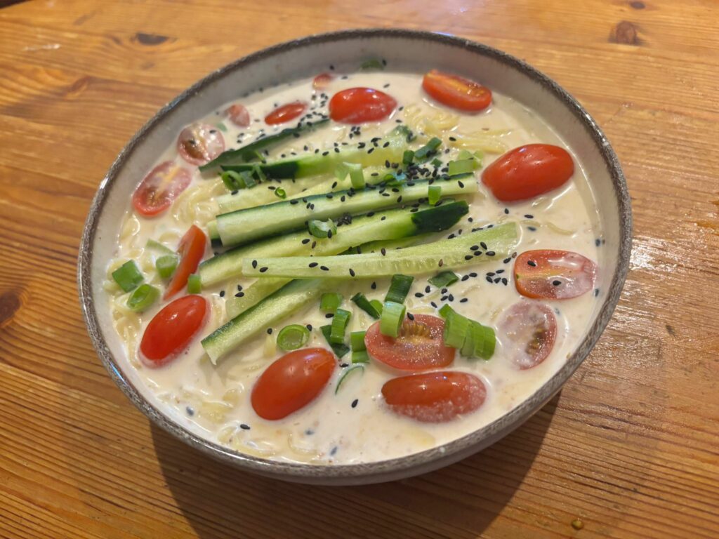 Découvrez la recette facile et rapide du Kongguksu, un plat coréen rafraîchissant à base de nouilles servies dans un bouillon de soja onctueux. Préparé avec du lait de soja non sucré, du tofu soyeux, et accompagné de garnitures fraîches comme le concombre et les tomates, ce repas léger et végétarien est idéal pour l'été. Parfait pour les amateurs de cuisine coréenne ou pour un repas sain, cette soupe froide aux saveurs délicates se prépare en seulement 20 minutes. Testez ce classique coréen chez vous et apportez une touche d'exotisme à votre table !